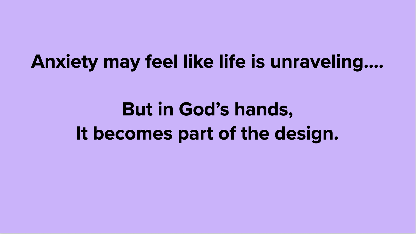 https://youtube.com/shorts/Z4iqQf8akOM?feature=share Anxiety affects all of us at some level. For some, anxiety can be life altering as the condition causes our bodies and emotions to falter. But we are not alone...ever. What do you do when you find yourself anxious or fearful?